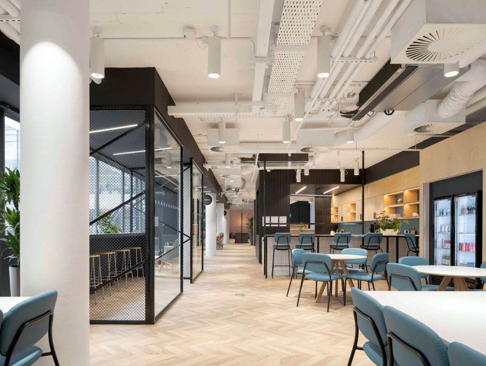 Recognising the need for agility in a modern tech office, the scheme incorporates Ws.D Twister Training Tables. These flip-top tables allow key areas to be rapidly reconfigured for training sessions, town halls, or workshops. To balance this open collaboration with the need for privacy, Mute Meeting Pods were installed, offering acoustically protected spaces for confidential calls.