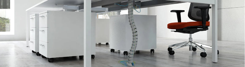• Cable baskets / trays: These are used to support and route cables underneath your desk in a neat and organised way.