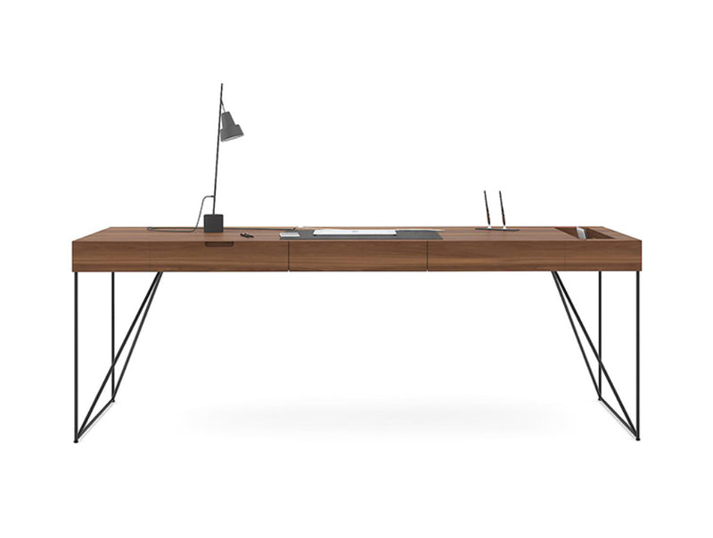 Aesthetic, minimalistic yet extremely functional AIR Executive design provides an outstanding feeling of comfort and openness. The essential parts of AIR Executive are its solid natural wood veneer table top and steel legs that ensure not only the elegant feel of the table but also its stability. The integrated drawers are lined with high-quality natural leather. You can choose accompanying cabinets with the same distinctive leg detail as well as minimalistic wardrobes and other storage solutions.