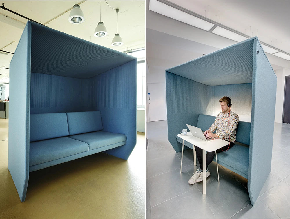 The BuzziHub is a stylish shelter ideal to be on your own or to share with co-workers. Combine several hub together to create a larger meeting room. This product is an innovative solution, ideal for office or each place where you need to be concentrated and quieter area.