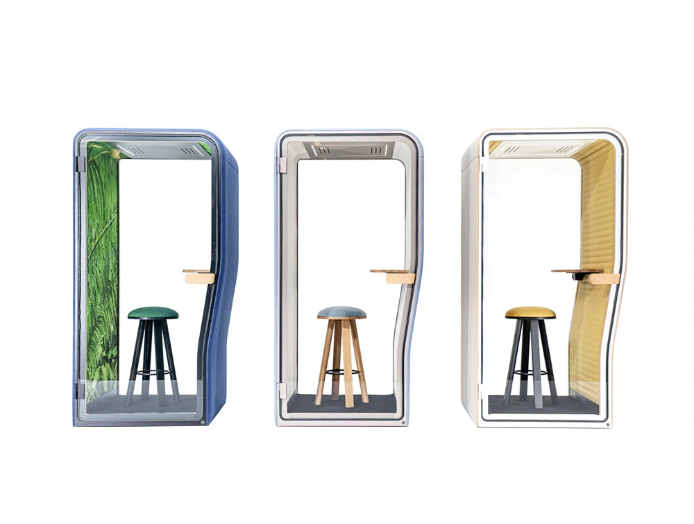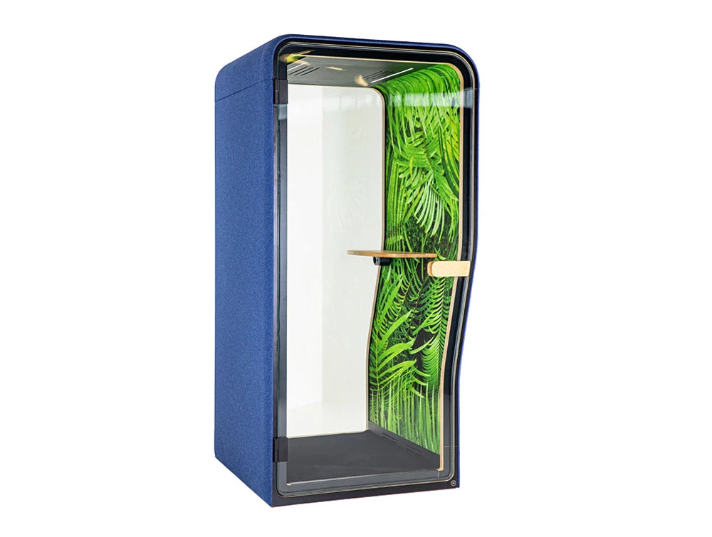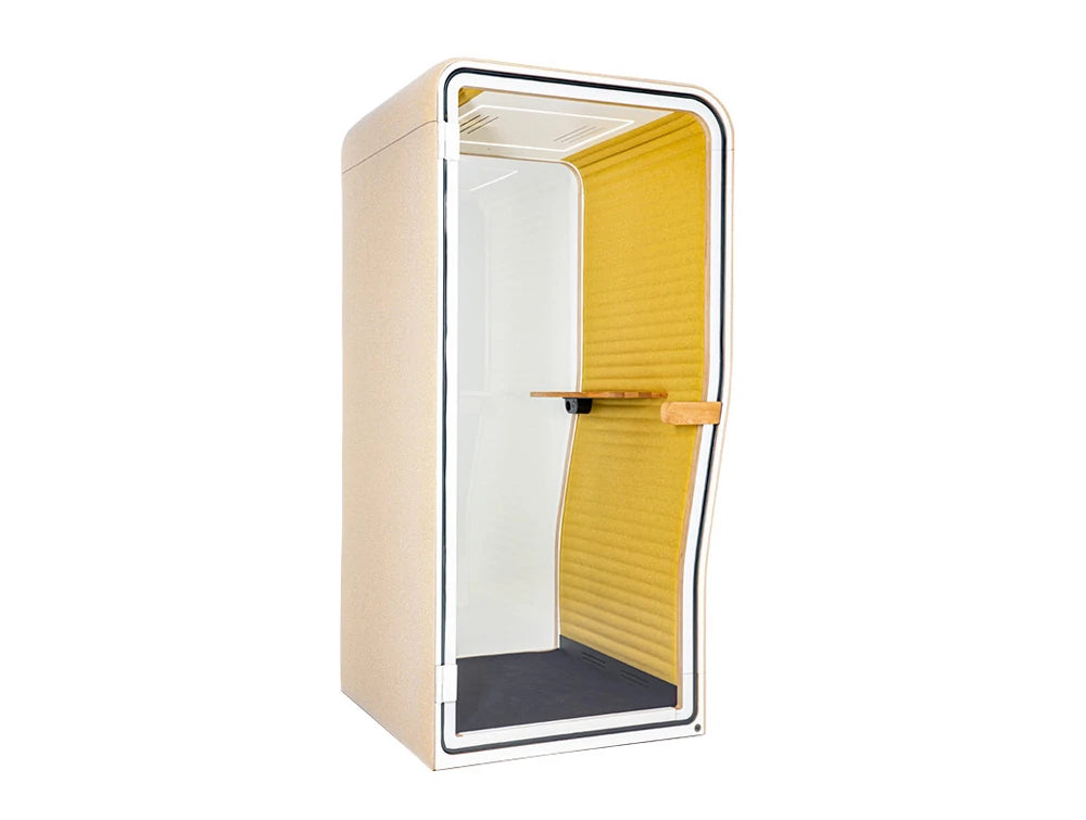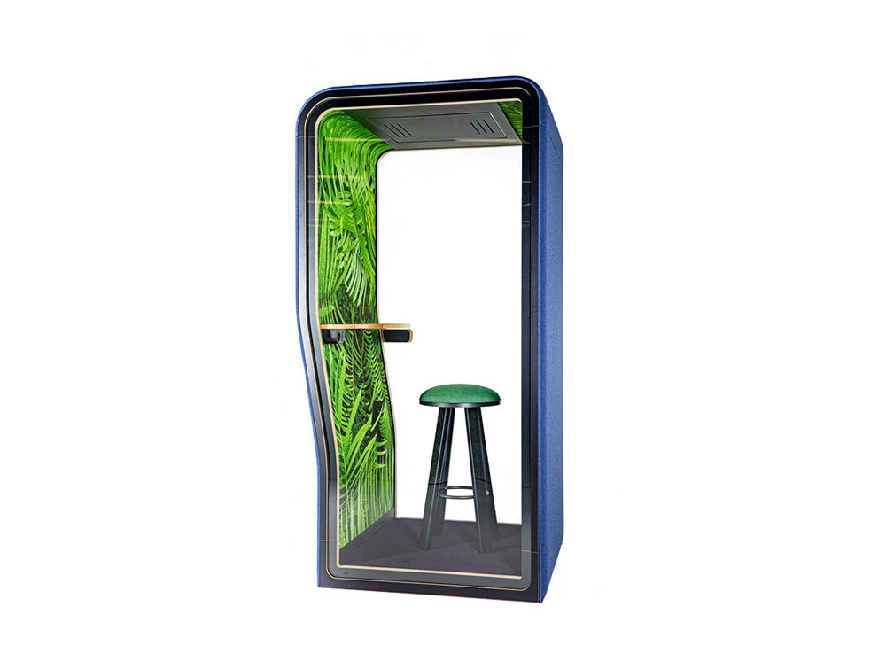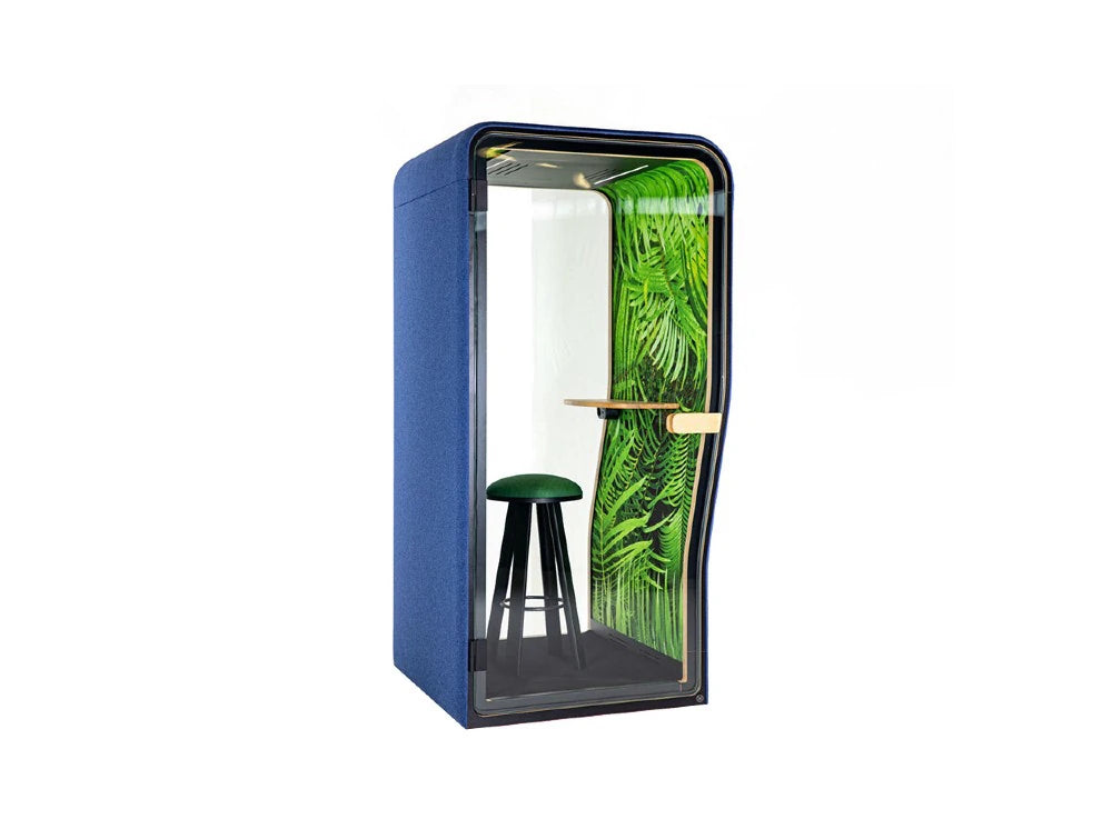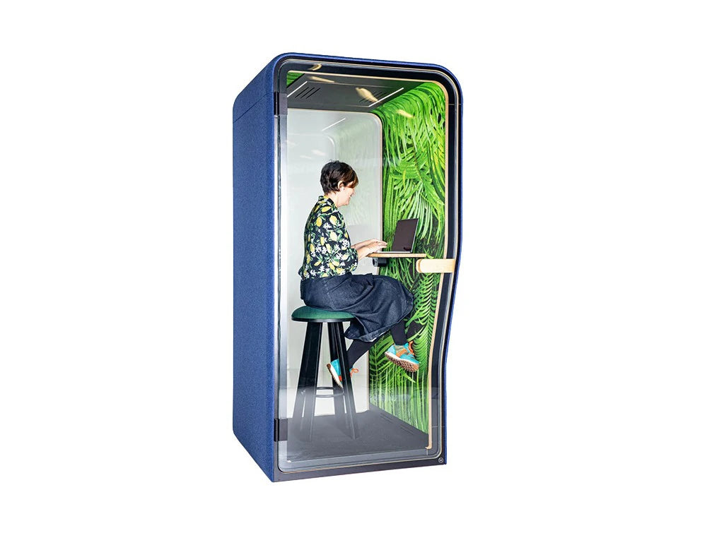 BuzziNest Booth is all you need to erase distractive noise from any workplace. The compact acoustic privacy booth for one offers a private space to work and take calls in any open space without disturbing others, and most importantly, being disturbed. Due to its upholstered exterior and fabric panels on the interior, BuzziNest Booth effectively dampens sound from every direction to create maximum peace and quiet for everyone in the office, whether you are working inside BuzziNest Booth or out.