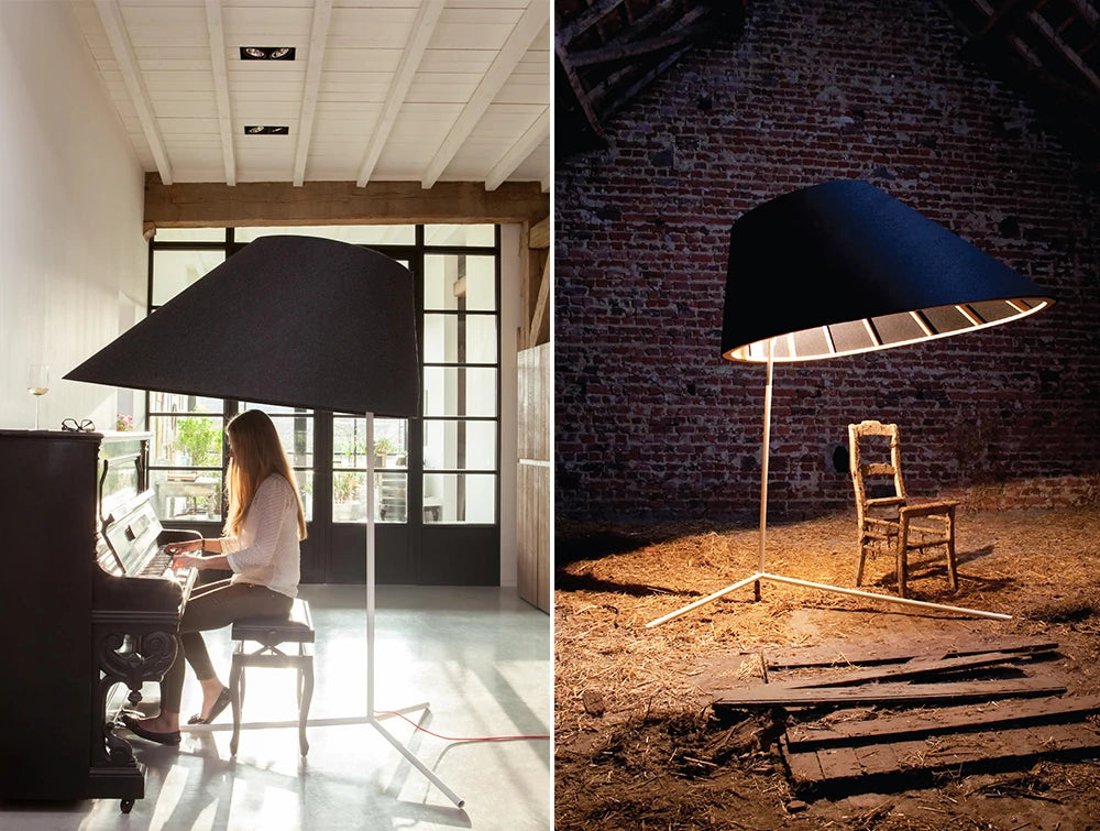 • BuzziShade is a noise-reducing freestanding lighting fixture that accommodates the demand for both sound absorption and lighting solutions