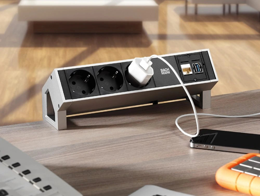 The Desk Connector Solution is an award-winning design that organises power connections on your office desk. Featuring user-focused orientation.