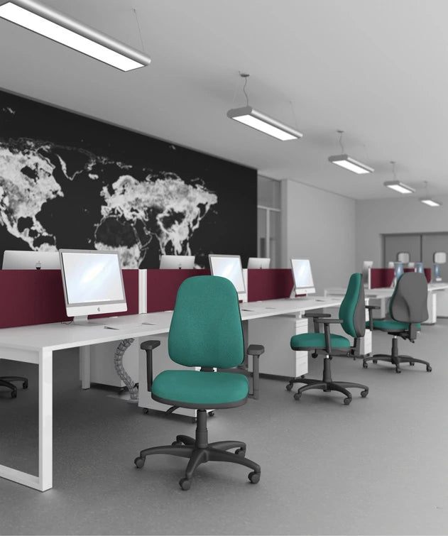 The "Desk Furniture Bundle" is a complete workstation package that includes a Beech Straight Cantilever Desk, a Double Monitor Arm, and a Blue Task Chair with Adjustable Arms. The desk provides a spacious and durable workspace, while the monitor arm promotes ergonomic screen positioning. The task chair offers comfort and support with adjustable arms. This bundle is designed to enhance productivity and create a comfortable working environment.