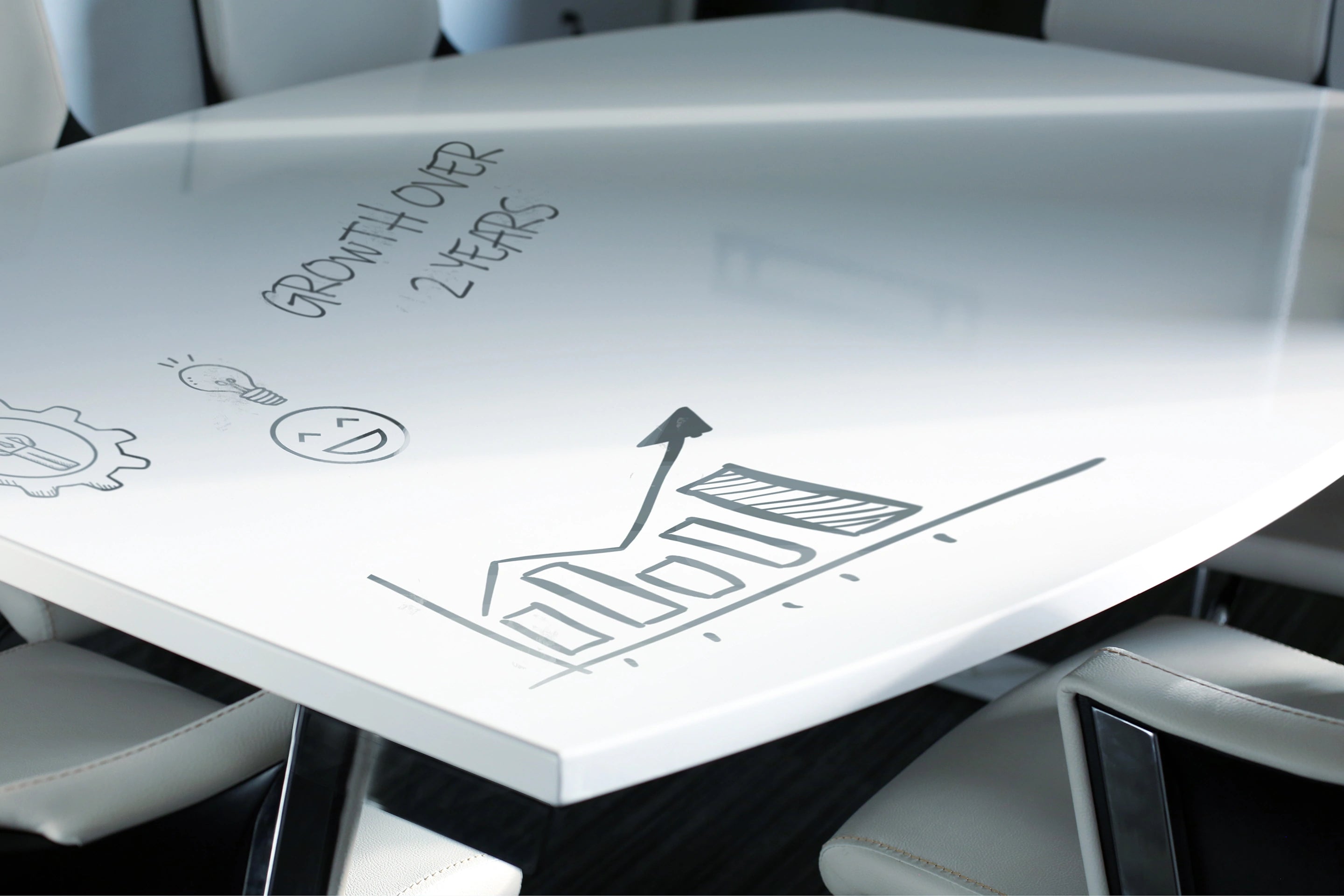 Dramatic super-sheen panels give High Gloss furniture a uniquely striking appearance in the boardroom, meeting areas and general office. A design concept that creates spectacular workspace areas. Stunning high gloss finish, with writable surface that can be wiped clean, when used with compatible dry-wipe erasable marker pen and cleaning kit.
