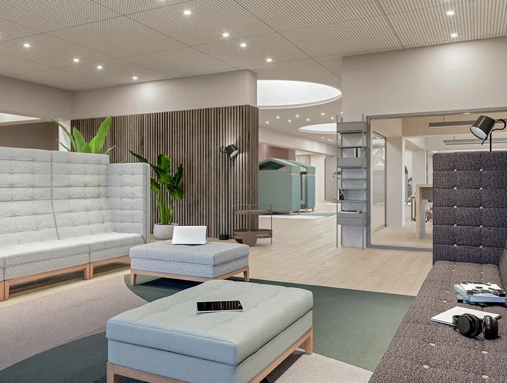 • This fully modular high-back soft seating unit offers a modern design focusing on collaborative work