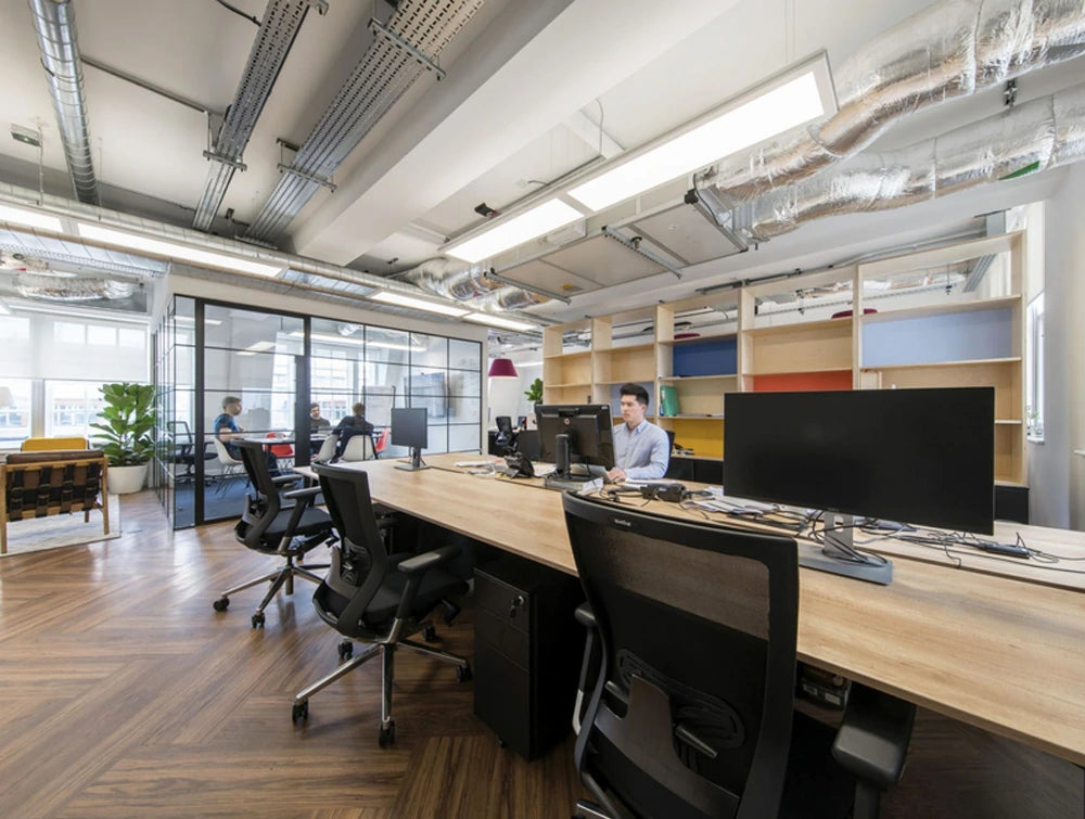The Palisades Wooden Grid are perfect office space dividers where you can included cupboard storages. Create different zones within open office and get more privacy while keep connection between each area.