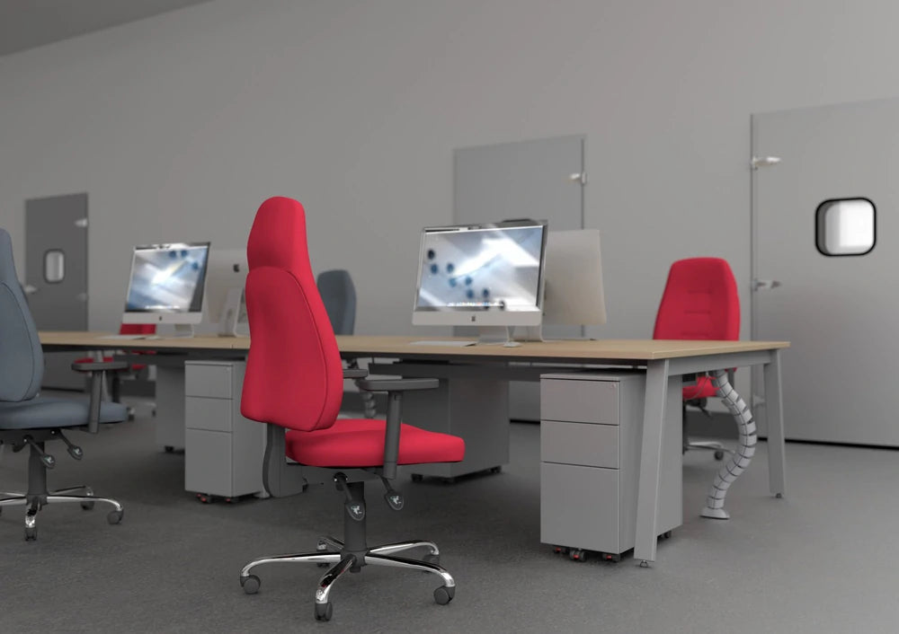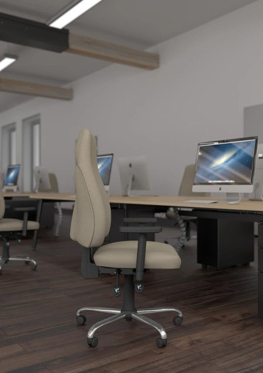 A large heavy duty operator chair with deep contoured foams with an ultra ergonomic contoured backrest for the ultimate in comfort.