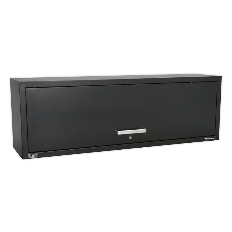 Heavy-duty 1 550 mm wide wall cabinet in all-steel construction with graphite powder-coat finish, lift-up door with gas-struts, brushed aluminium handle and a high-quality lock with twin keys. Designed to integrate with compatible floor cabinet modules, this robust modular unit offers secure, organised storage for professional workshop and trade environments.