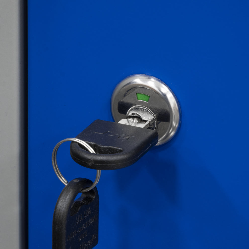 Mobile industrial cabinet featuring a single adjustable shelf within a lockable locker and mounted on heavy-duty castors (two locking) for easy positioning. Constructed from steel with a robust finish, it is ideal for flexible tool and equipment storage in trade workshops and garages.
