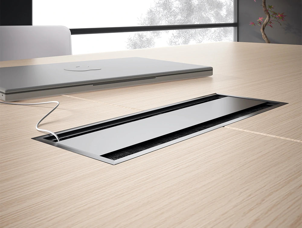 Like the executive desks in the same range, the Prestige meeting furniture stands out through the use of quality materials in modern finishes. By adding extensions, the Prestige table can be used a conference table. The table can be extended indefinitely on a shared arch and each extension can seat extra 4 people. It features 38mm thick Niteche tops or 25mm thick Structure tops with 2mm thick shock-proof ABS edging.