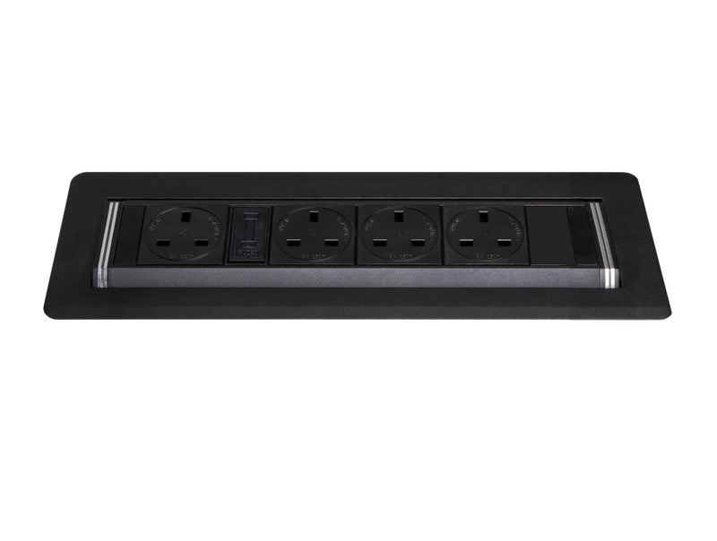 Expand your meeting room’s capabilities with the Rotadock, a high-capacity rotating module designed for seamless, high-end desk integration. Encased in premium aluminium, this unit features four UK fused sockets and a rapid 45W USB-A & C charging interface. Its unique 180-degree rotation hides ports when not in use for a clean, near-flush finish. Fully customisable with HDMI and Cat6, it is the definitive power and data solution for large conference tables.