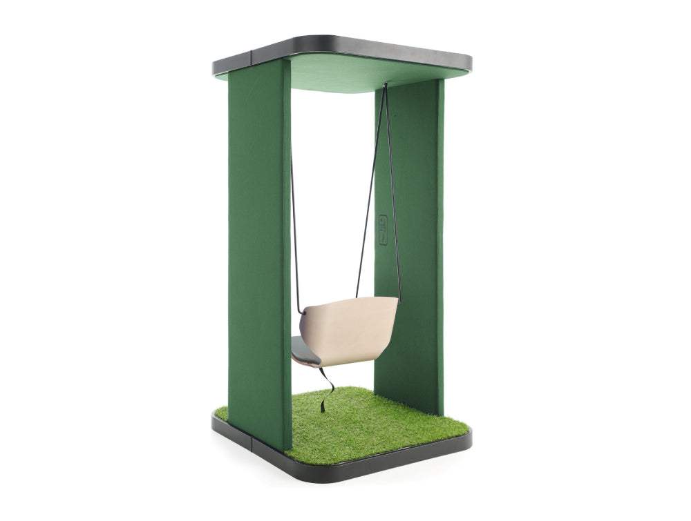 The Social Swing creates an informal meeting place that stimulates creativity at the same time transferring the atmosphere of the park to the office. This is the place where the most inspiring and surprising ideas can arise in an atmosphere of free discussion.