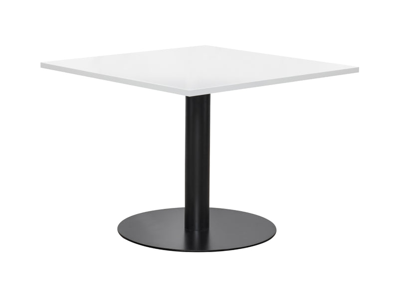 This square white top dining table offers a clean, modern aesthetic perfect for any dining space. It features a sleek, round tabletop in a crisp white finish, creating a bright and inviting atmosphere for meals and gatherings. Choose from two base finish options to complement your existing décor: classic black for a sophisticated, grounded look, or contemporary brushed steel for a touch of modern elegance.