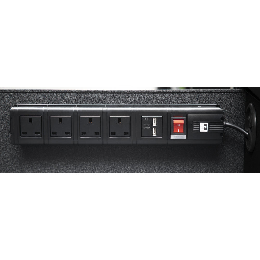 A robust 1120 mm-wide mobile tool cabinet with heavy-duty steel construction, steel inner walls and full-height locking mechanism. It features 45 mm ball-bearing drawer slides for heavyweight items, soft-close drawers, a dedicated power-tool charging drawer with 230 V and USB sockets, four Ø125 mm castor wheels (two swivel with brakes) and a flip-top work surface - ideal for professional workshops.