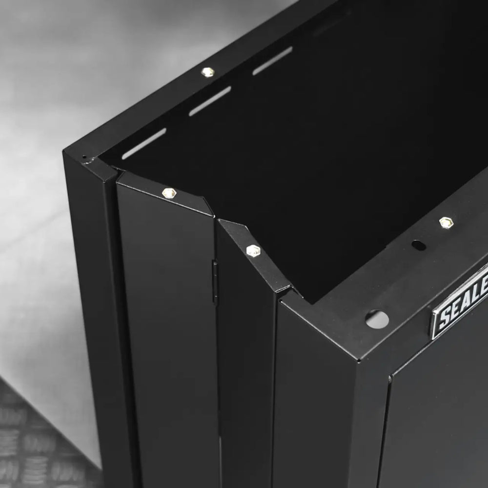 A comprehensive 3.1 m modular garage storage system featuring ten pre-configured units in one pallet, designed to fold out rapidly from flat-pack. Includes black MDF worktops on base units, ball-bearing drawer runners, magnetic-latch doors, adjustable feet and peg-board backing panels. Overall size 3100 × 460 × 2080 mm-ideal for trade workshops, garages and heavy-duty tool organisation.