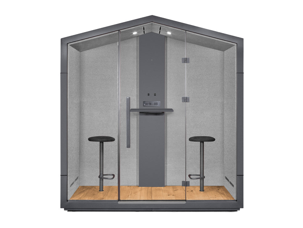 Treehouse collection includes 1, 2 and 4-person booths in closed and open style versions. The application of Treehouse booths in arrangements makes it possible to set aside some space that will provide a bit of relaxation from all the surrounding hustle and bustle.