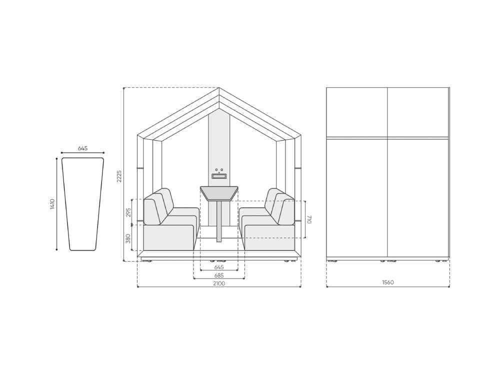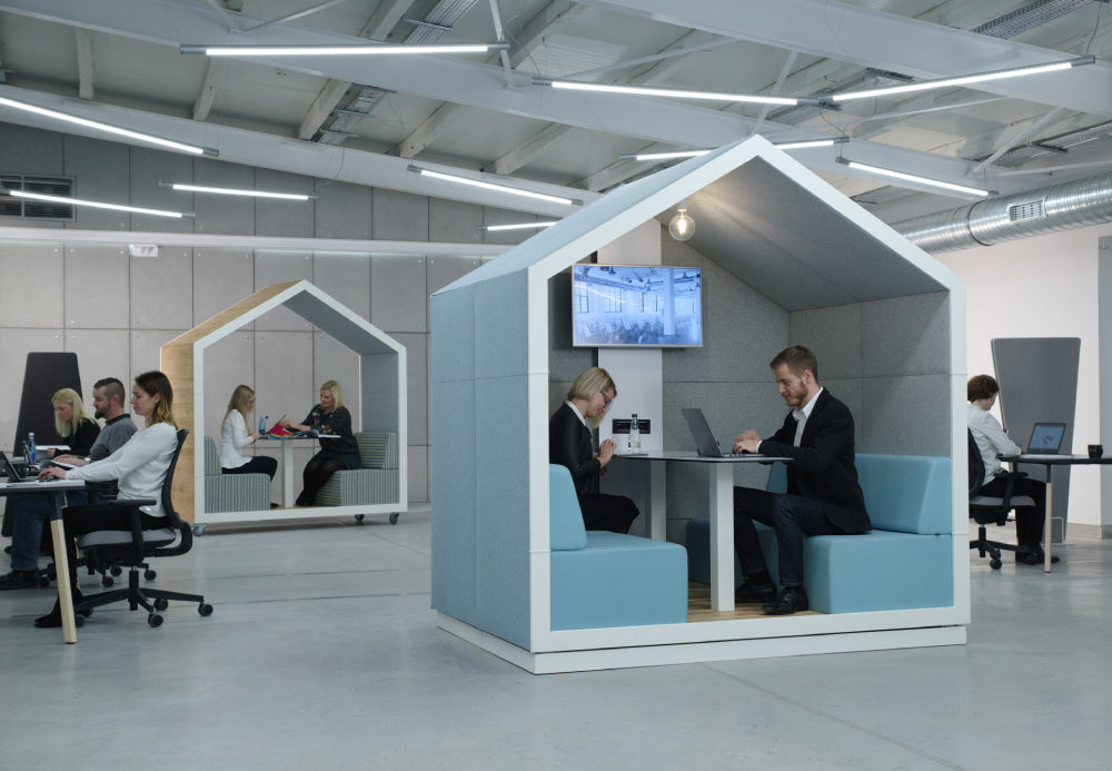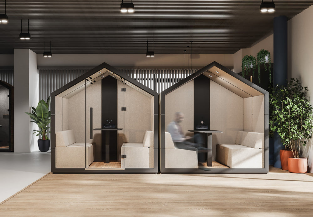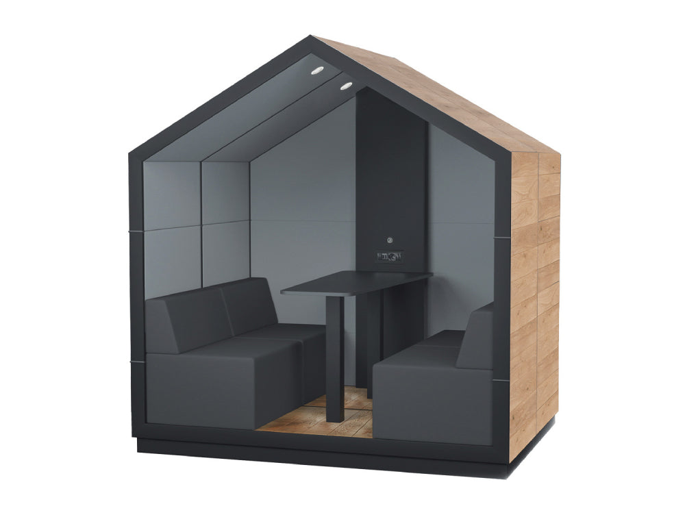 Treehouse collection includes 1, 2 and 4-person booths in closed and open style versions. The application of Treehouse booths in arrangements makes it possible to set aside some space that will provide a bit of relaxation from all the surrounding hustle and bustle.