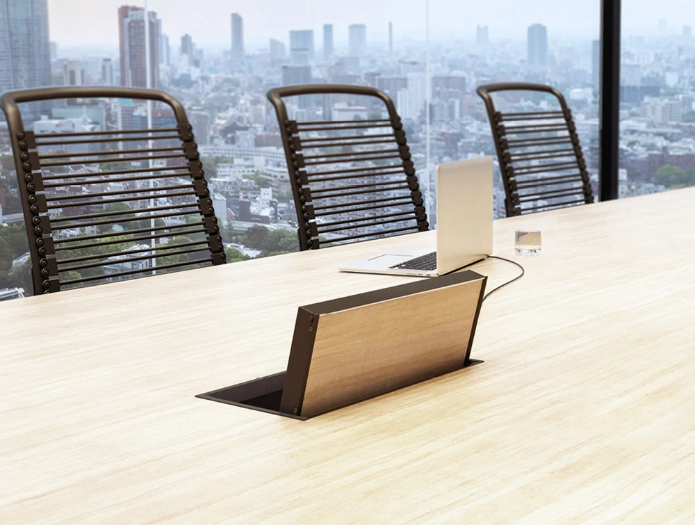 The Venid Powerstrip Tray not only looks elegant but also offers a practical benefit of stowing cables conveniently in the tray. Can be integrated quickly and easily into tables, perfect for modern offices.