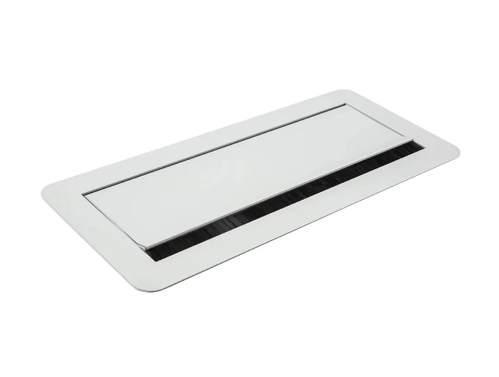 The Wave is mounted virtually flush on a desk surface with attached plug tops and keeps all power outlets out of sight. Easily mount the unit by using a cut-out in the desk surface. This one-of-a-kind power outlet solution allows you to connect or disconnect your plug tops with ease. The PDH can be lowered back to its recessed position leaving only the cables protruding from the desk surface. The unit is constructed in aluminium with several finishing options to suit any work surface.