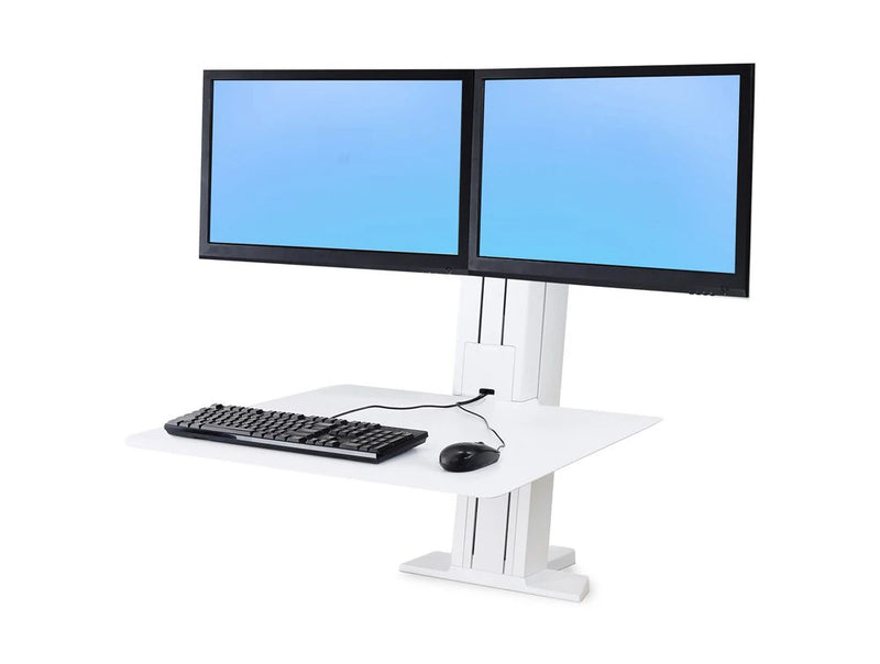 This WorkFit-SR Dual Monitor Sit-Stand Workstation boasts a highly durable construction with a spacious work surface & Internal cable management. Ergonomic friendly for a healthier workspace allows for ease of adjustments.